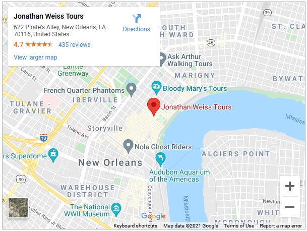 Jonathan Weiss is one of the South’s leading historians and purveyors of the macabre history that makes New Orleans the most haunted city in America. With over 14 years of experience, his passion for telling the stories of New Orleans’ and the French Quarter’s deepest and darkest tales will leave visitors and locals alike spellbound. As an actor, he trained in America and Great Britain, eventually settling in New Orleans pre-Katrina after being mesmerized by its magic at a young age.